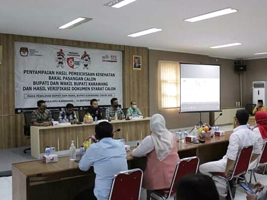 KAB. KARAWANG, – Hasil pemeriksaan kesehatan tiga bakal pasangan calon (Bapaslon) Bupati/Wakil Bupati Karawang Pilkada 2020 diumumkan. Komisi Pemilihan Umum (KPU) Kabupaten Karawang menggelar rapat pleno terbuka untuk menyampaikan hasil kesehatan dan juga hasil verifikasi dokumen syarat calon, Senin (14/9) di Aula kantor KPU Kabupaten Karawang.