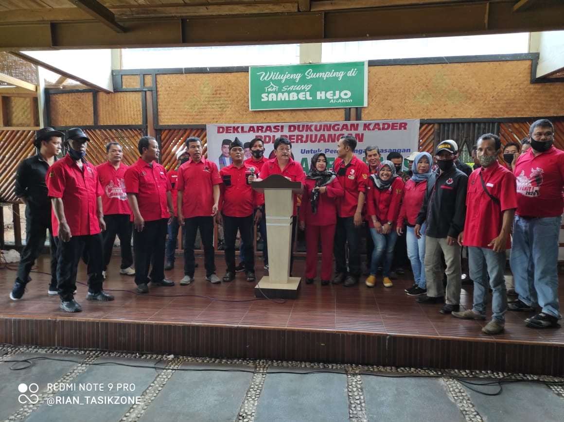 KAB. TASIKMALAYA, – Sebanyak 22 eksponen pengurus anak cabang PDIP Perjuangan Kabupaten Tasikmalaya mendeklarasikan dukungan untuk pasangan calon bupati dan wakil bupati Tasikmalaya nomor urut 1 Haji Azis rismaya Mahfud dan Hari Sanjaya yang di gelar di Rumah Makan Sambel Hejo Jalan Letjen Mashudi.