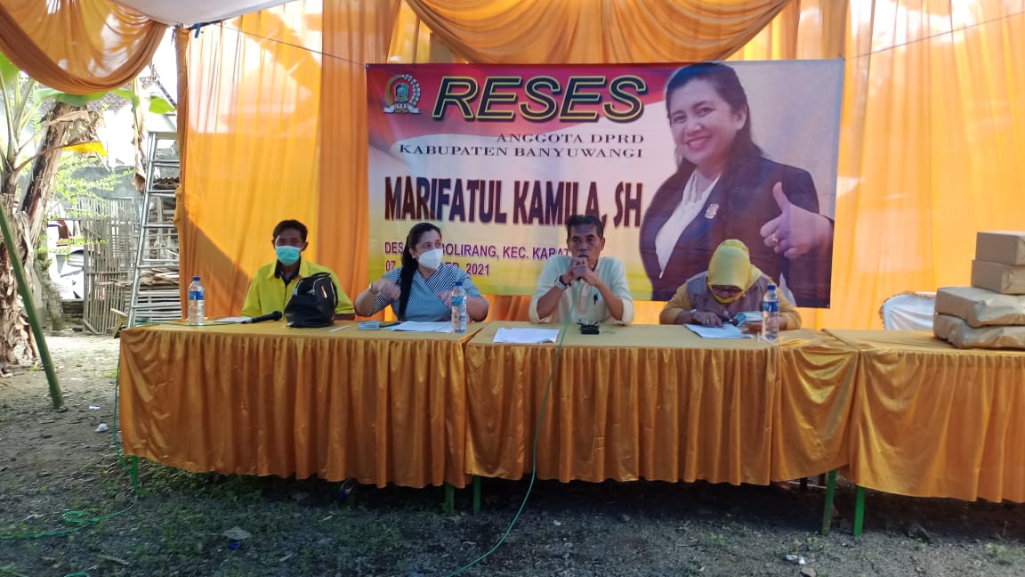 KAB. BANYUWANGI, || Bertempat di Desa Gombolirang Kecamatan Kabat, Banyuwangi anggota DPRD Banyuwangi dari Fraksi Golkar dapil dua Marifatul Kami,SH mengelar Reses adapun kegiatan tersebut yang tidak lain untuk menampung segala bentuk aspirasi dari masyarakat, pada Minggu, 7/ 11 / 2021.