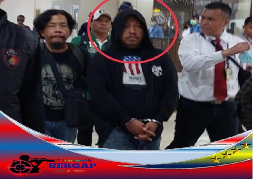 Debt collector dikawal sejumlah polisi tiba di Bandara Soekarno-Hatta, Tangerang.