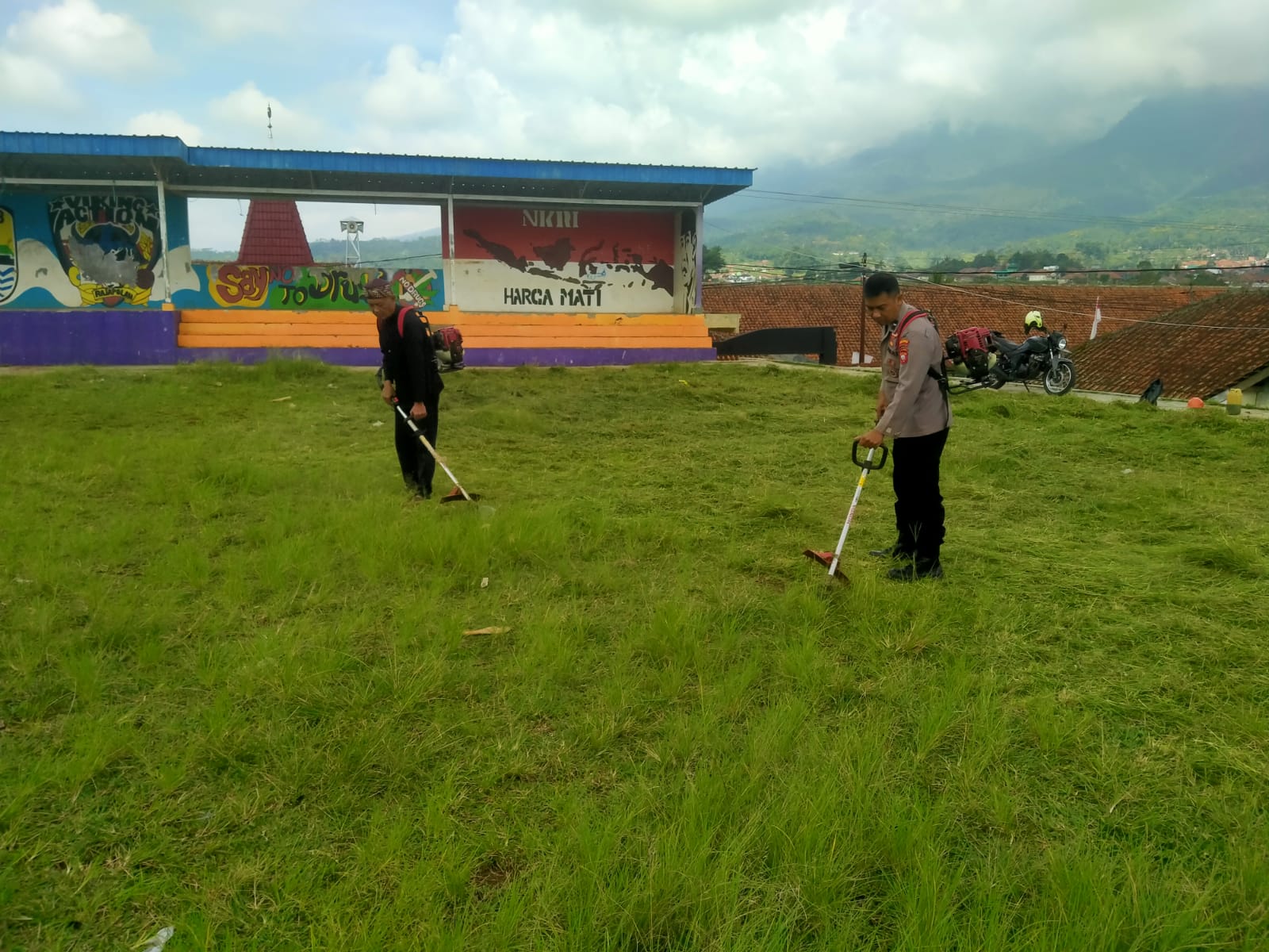 POLRES TASIK KOTA, || Bhabinkamtibmas Desa Kiarajangkung melaksanakan kegiatan sambang warga dan silaturahmi Pada kegiatan tersebut juga nersama sama masyqrakat melaksanakan gotong royong bersih bersih lapang ds Kiarajngkung .Polsek Cisayong Polres Tasik Kota( 06 / 04 /2023)